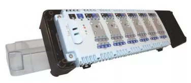 - Assure un raccordement simple et sûr entre les thermostats (6 max.) et les appareils électriques (servomoteurs).