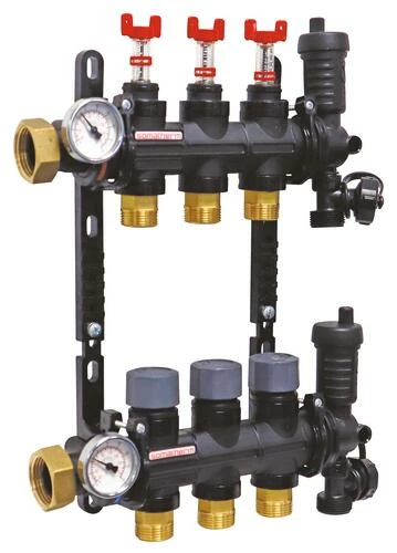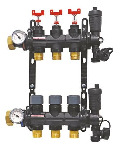 - Livré avec débitmètres, purgeurs d’air automatiques et supports de collecteur.