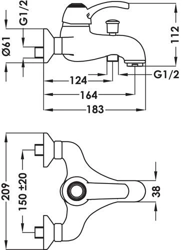 - Raccords muraux excentrés avec rosaces Ø61 mm.