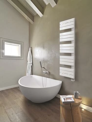 - Radiateur sèche-serviettes en acier blanc RAL 9010 pour chauffage central.
