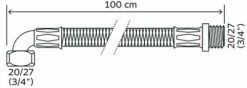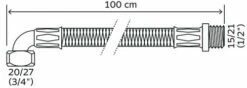 Flexible Sanitaire 1 Raccord Mâle 15/21 – 1 Coude écrou Tournant Femelle 20/27- Longueur 1000mm -DN8