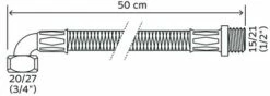 Flexible Sanitaire 1 Raccord Mâle 15/21 – 1 Coude écrou Tournant Femelle 20/27- Longueur 500mm -DN8