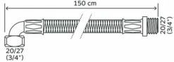 Flexible Sanitaire 1 Raccord Mâle 20/27 – 1 Coude écrou Tournant Femelle 20/27- Longueur 500mm -DN10