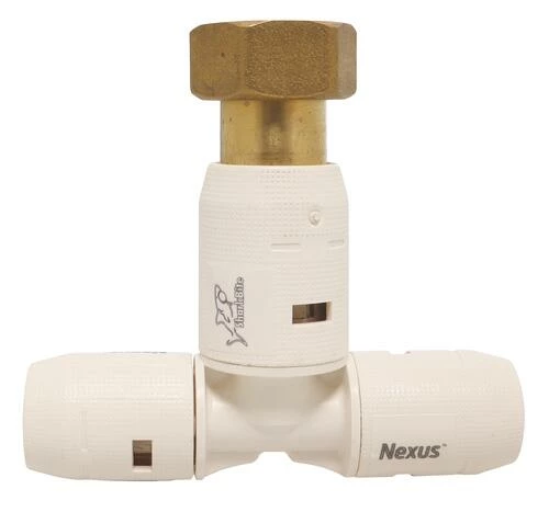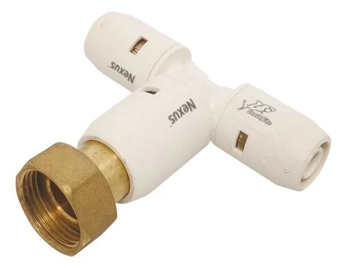 - Té instantané Nexus à écrou tournant au centre 15/21 pour tube multicouche Ø16.